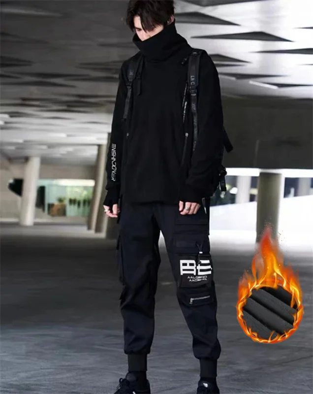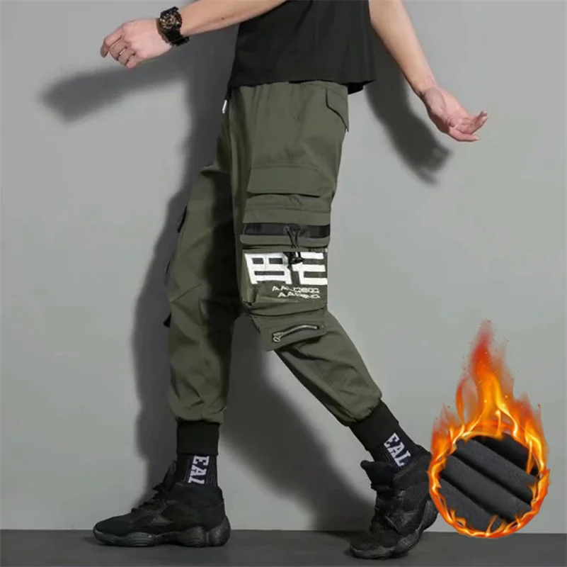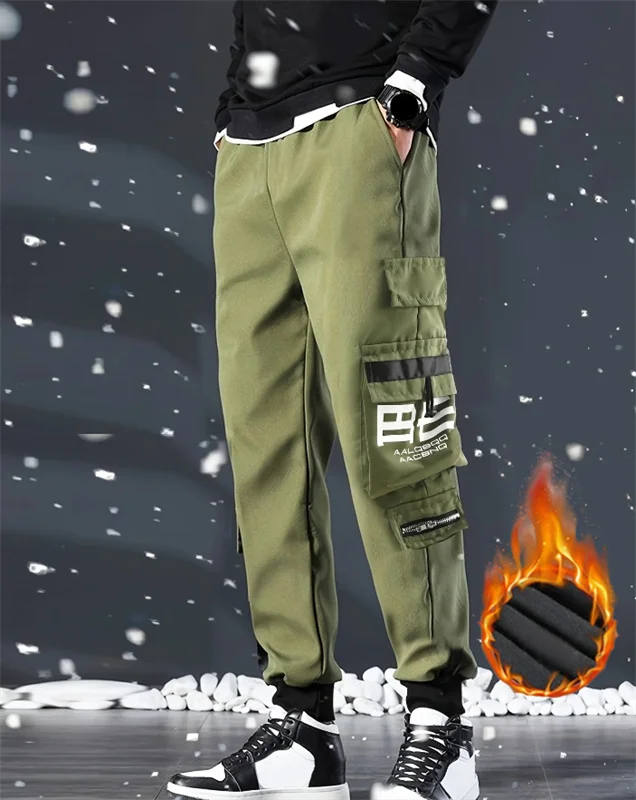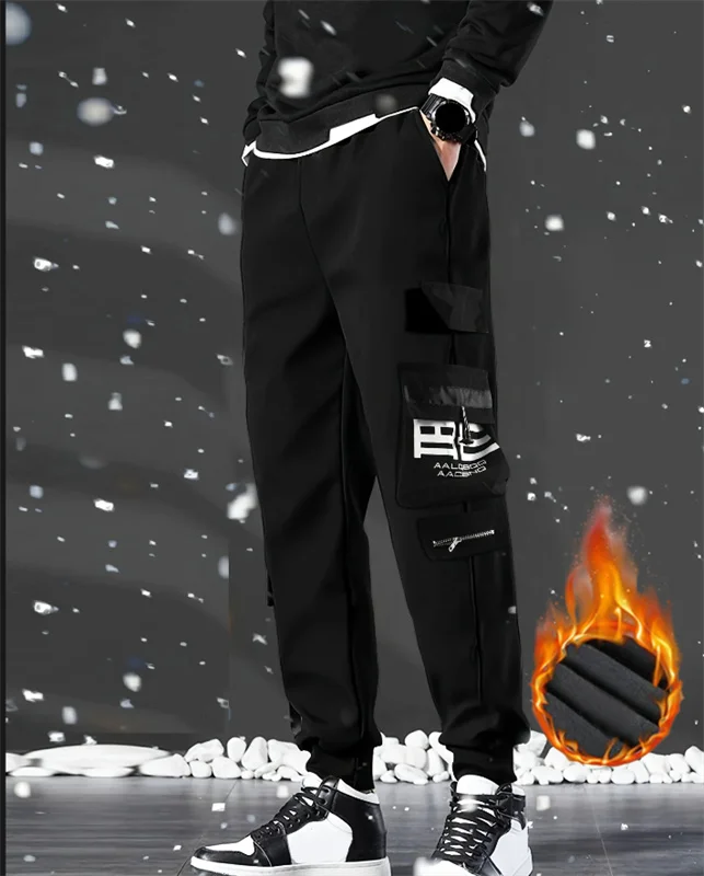 2024 new autumn and winter cashmere thick pants men's solid color loose drawstring fashion casual pants port style cargo pants
