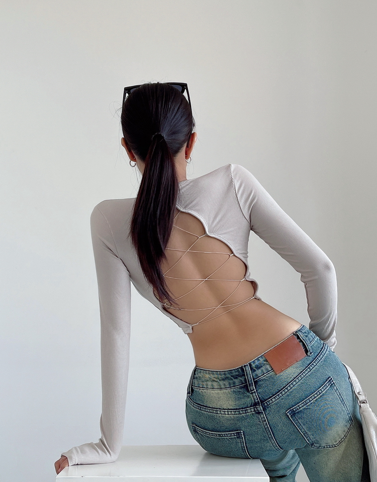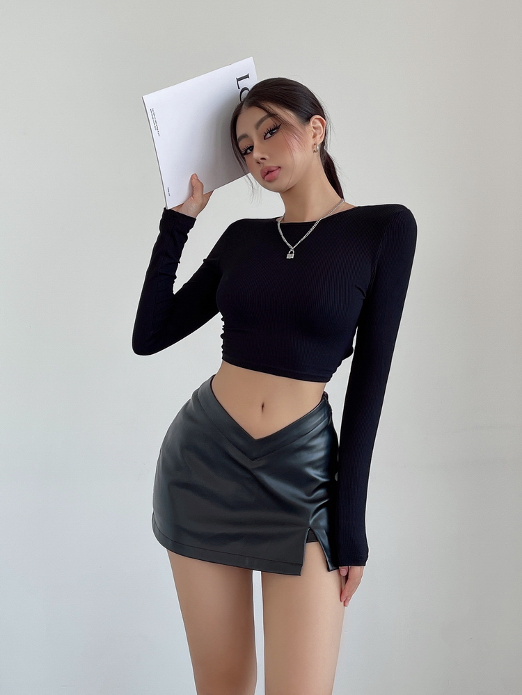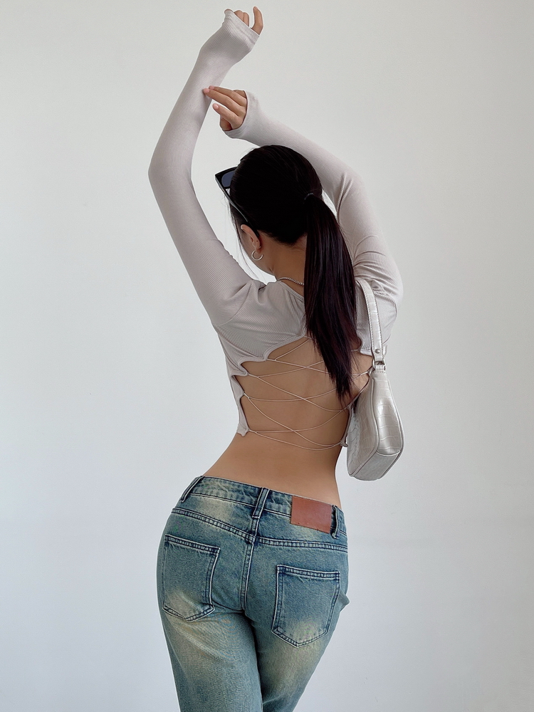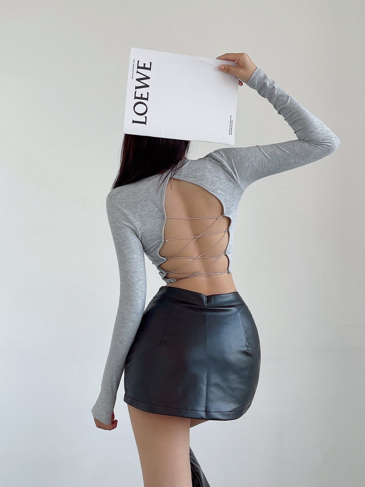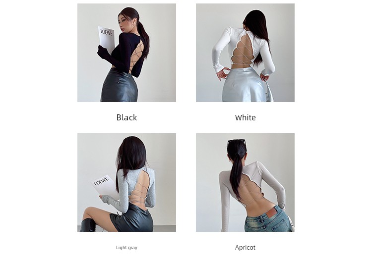 European and American Backless New Arrival Base Upper Clothes Long Sleeves T-shirt