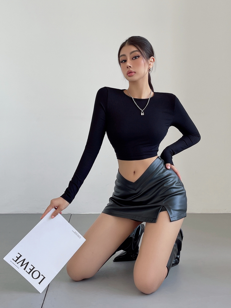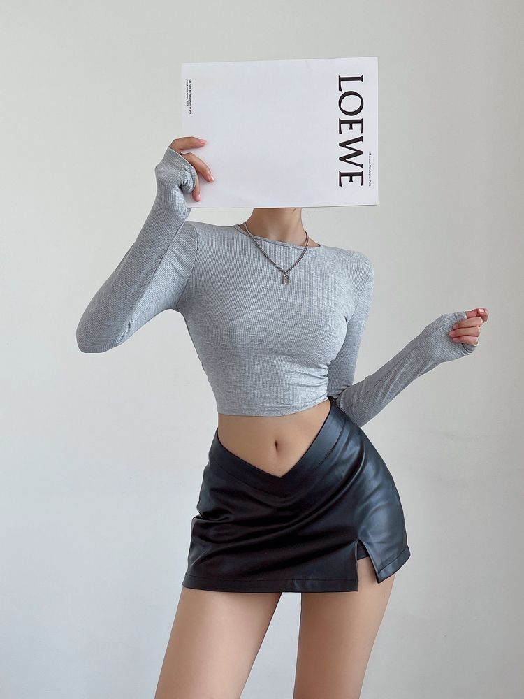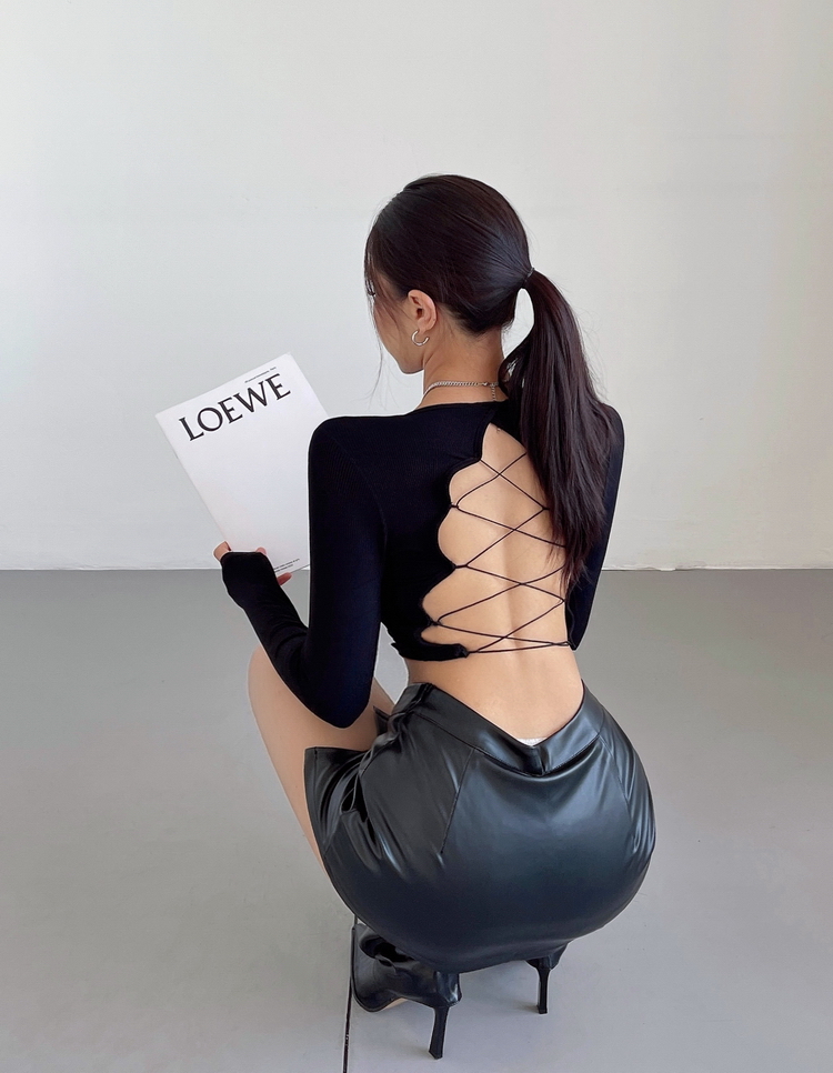 Back cross design, modified back lines just right small round neck makes the neck longer the looming Open Back adds a sense of surprise. Short tight version, it is a good choice as an inner wear wearing an unprecedented sense of atmosphere |