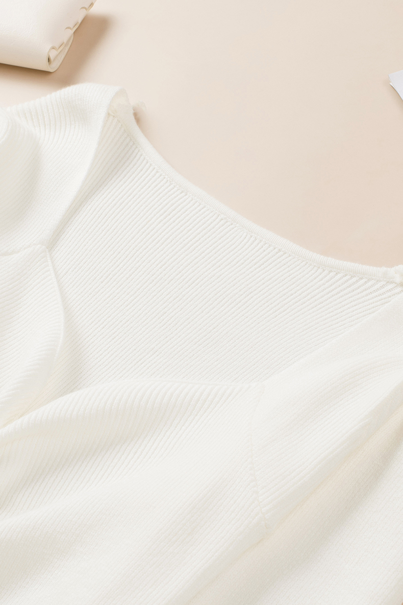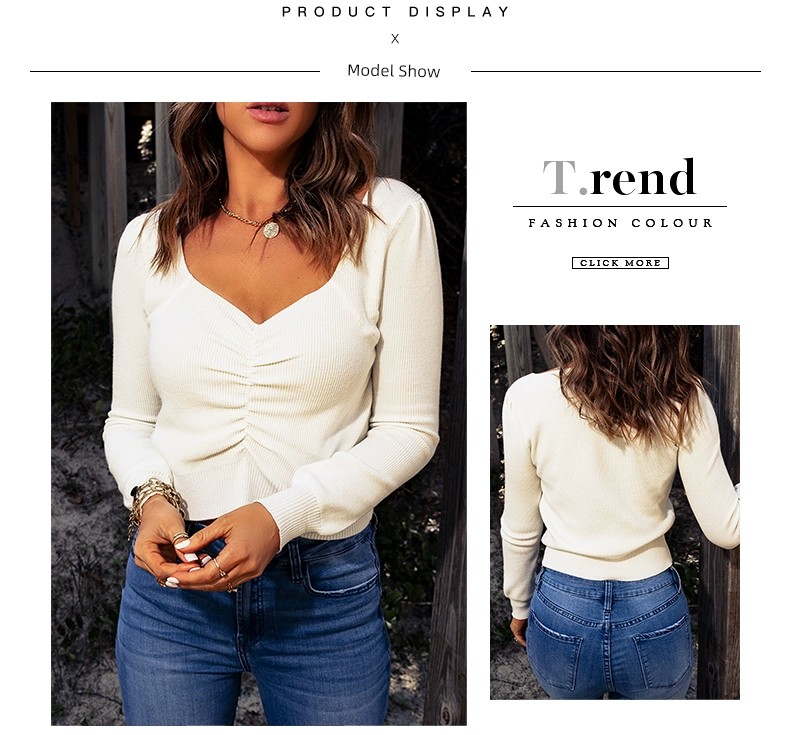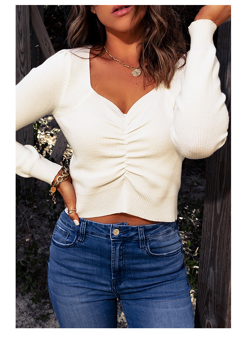 Fashion New Arrival Knitting Square Collar Ruched Long Sleeves Tops 2024 Autumn and Winter Fashion Inner Match V-neck Pullover Sweater Women