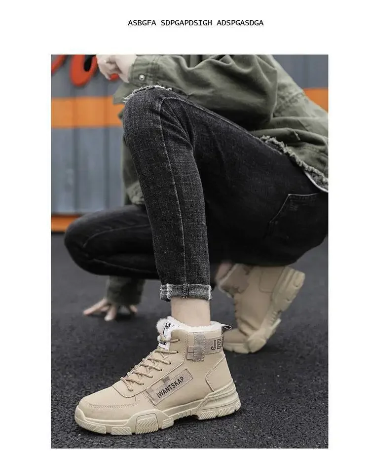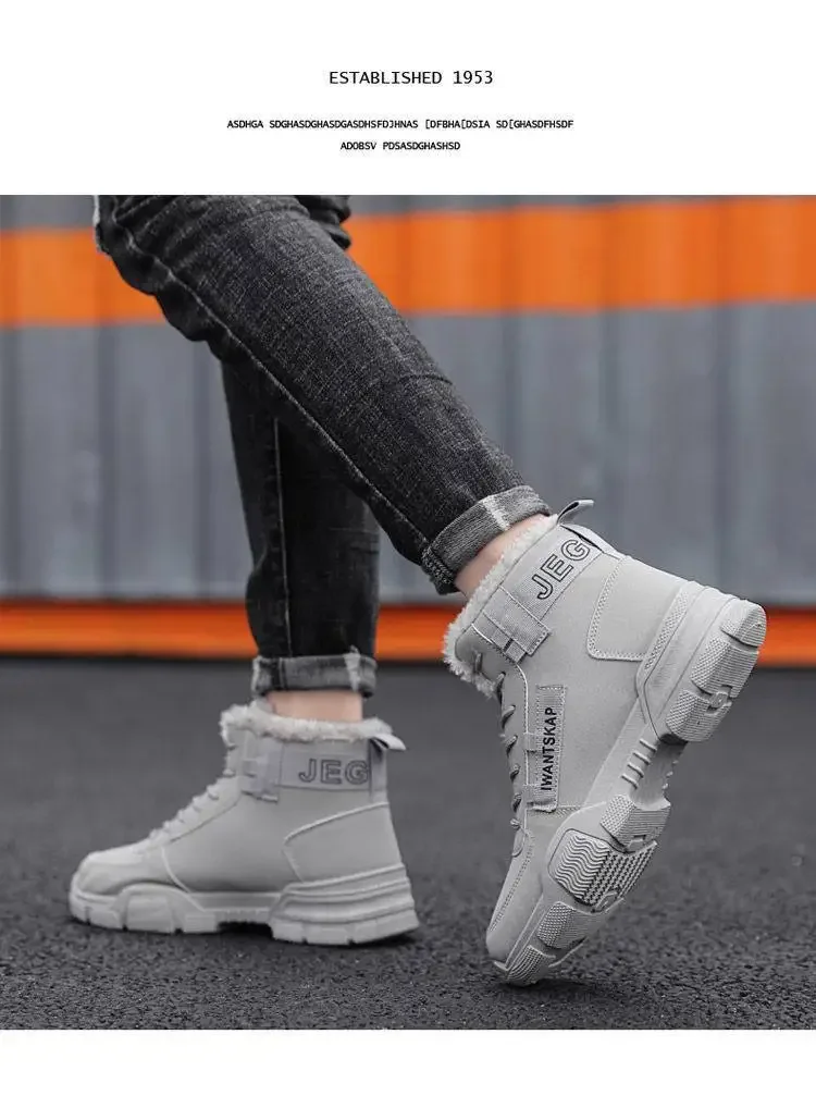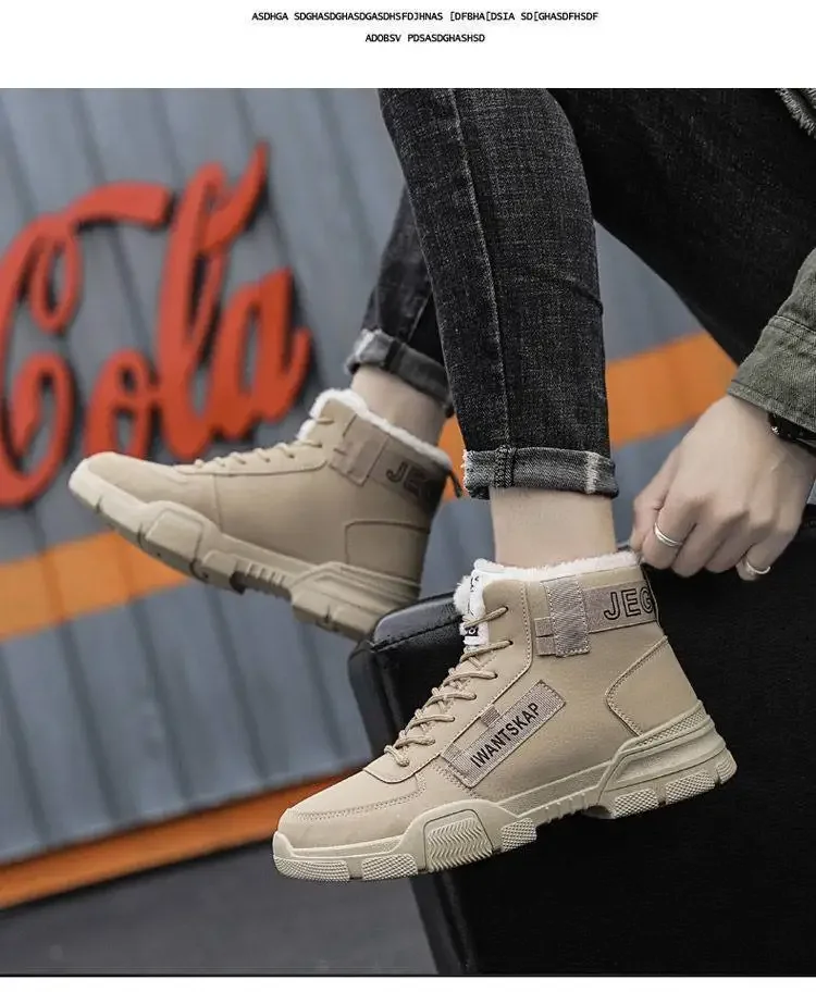 Men's Boots Winter High Top Men Shoes Waterproof Lace Up Plush Comfortable Anti Slip Cold Proof Warm Cotton Shoe Snow Boots
