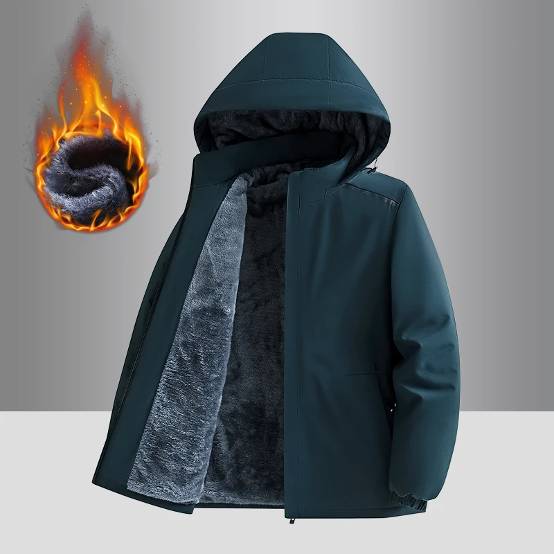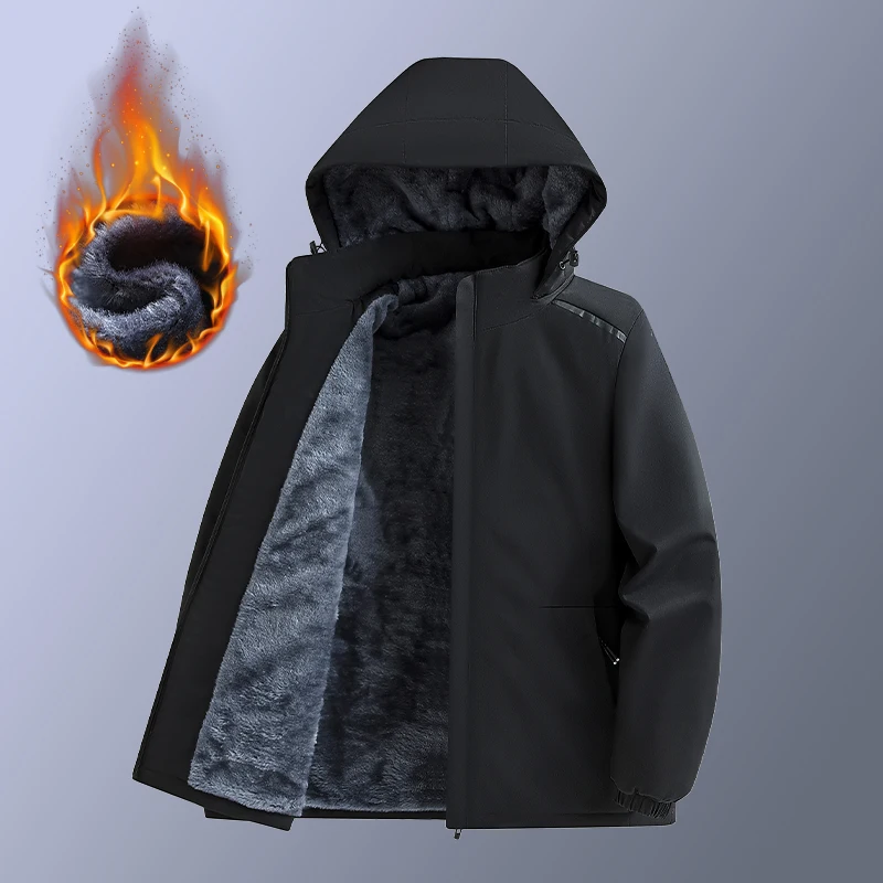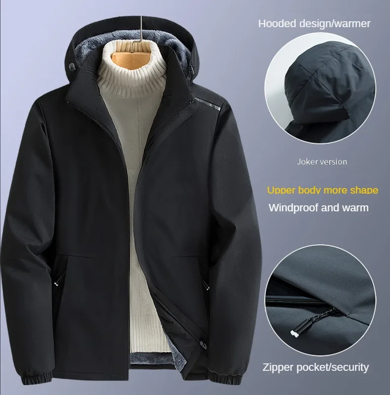 Men's Fleece stormcoat Autumn Winter New Solid Color Simple Loose Outdoor Sports Windproof Hooded Coat Men's Waterproof Jacket