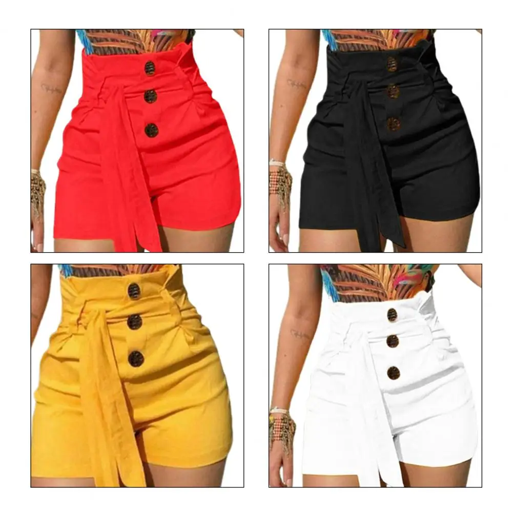Women Short Trousers High Waist Pleated Tight Temperament Skinny Shorts for Daily Life