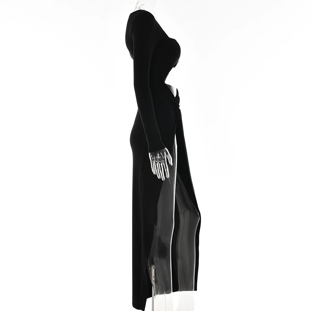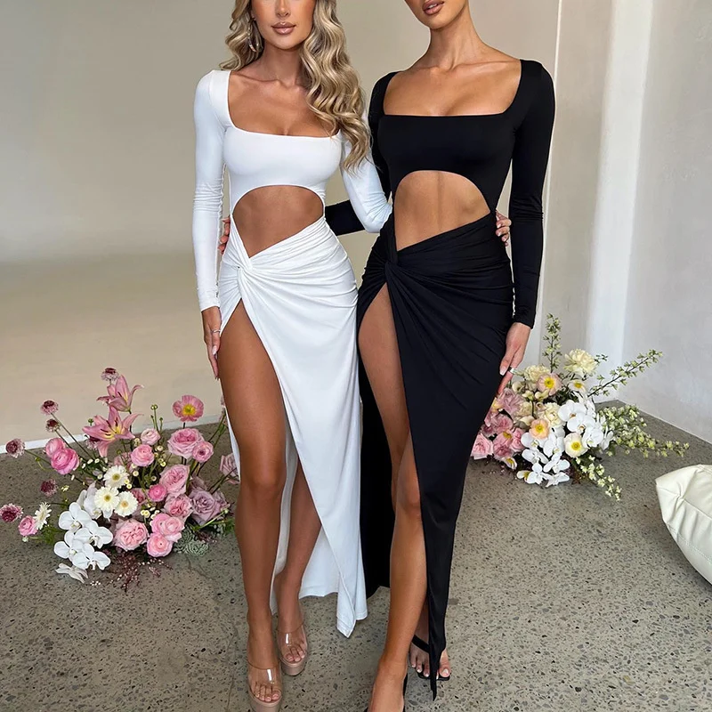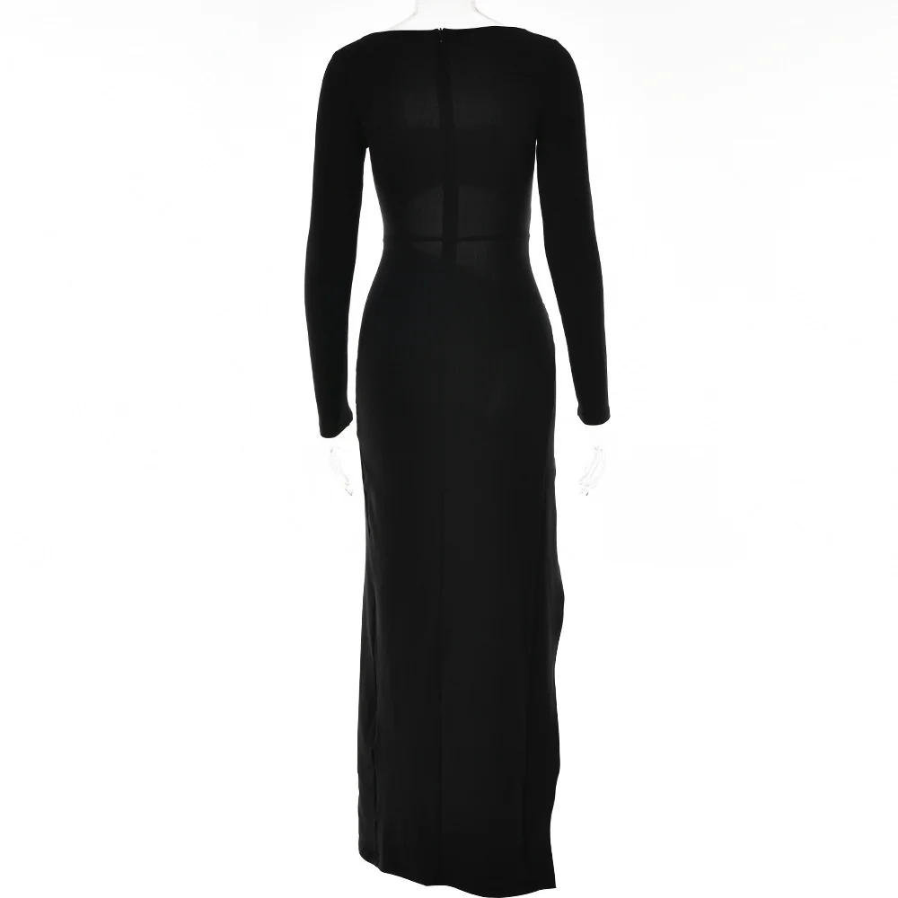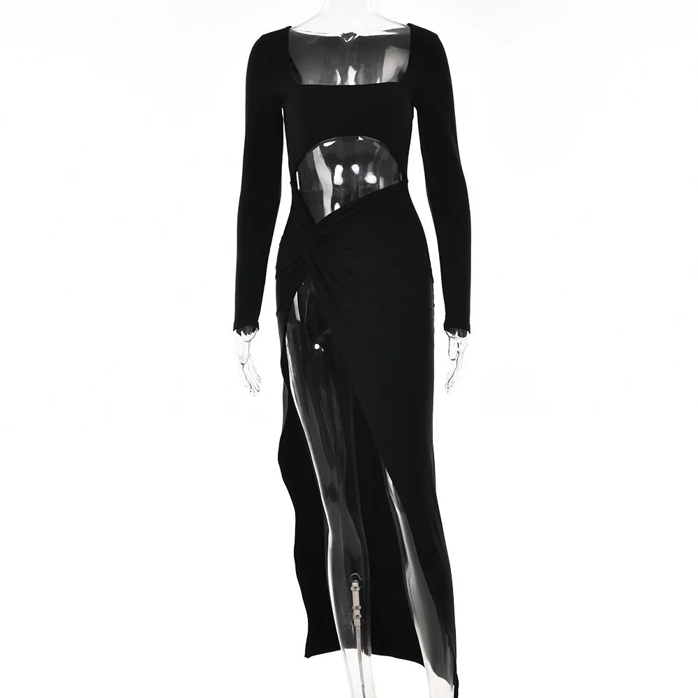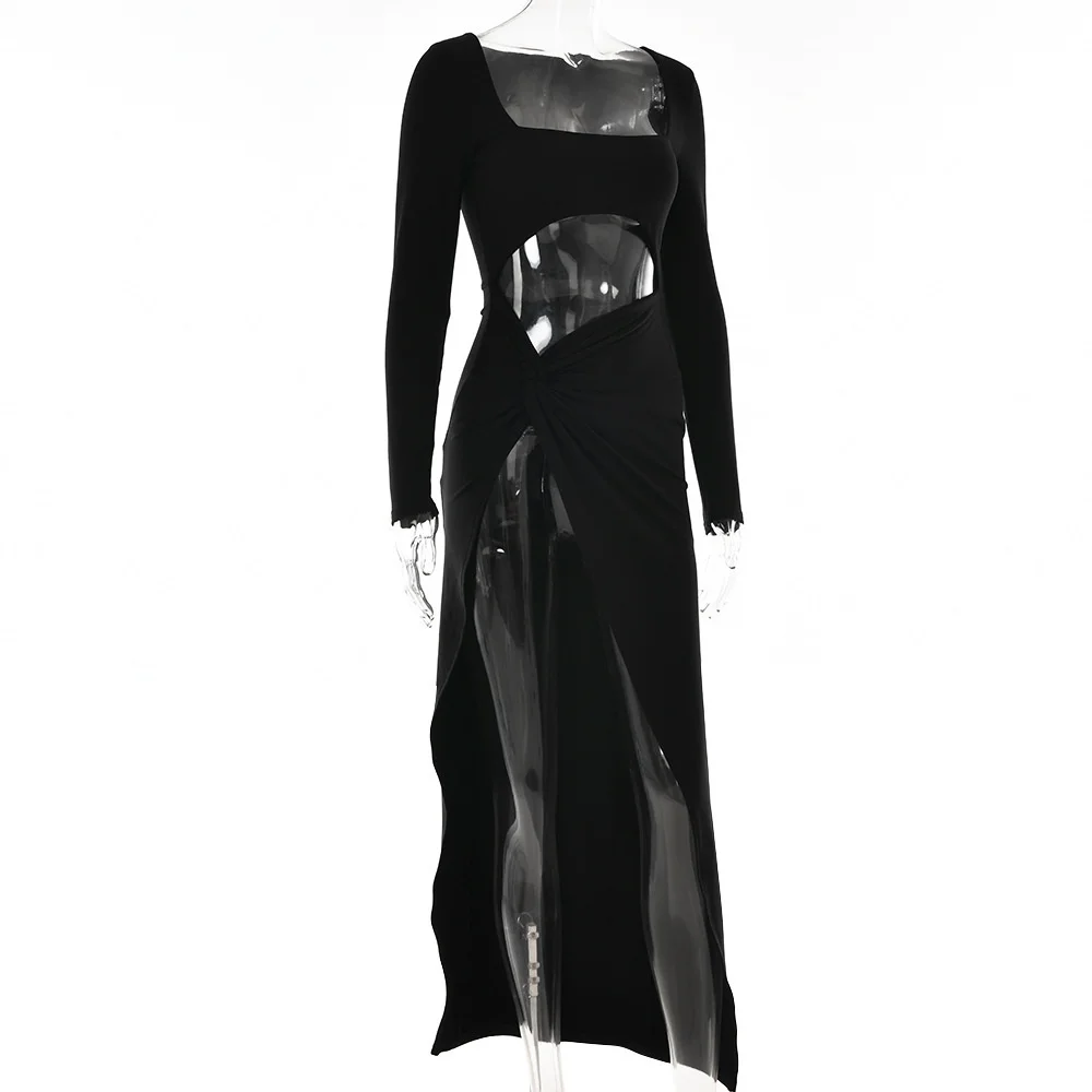 Townlike Hollow Out High Split Sexy Dress Women 2022 Slim Long Sleeve Autumn Club Party Dress Elegant Long Maxi Dresses Vestidos