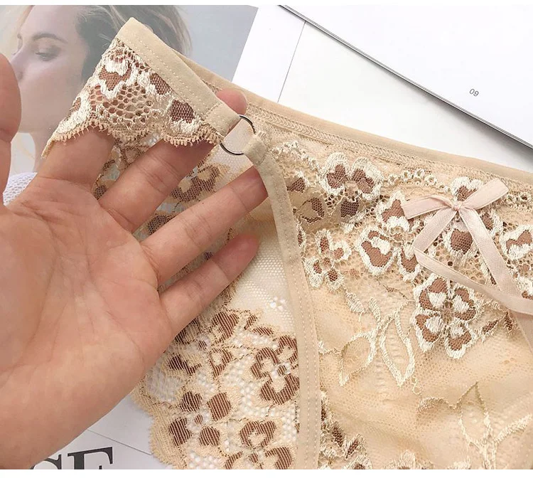 Women Lace Panties Sexy Low-waist Briefs Female Thong Floral Embroidery Underwear T-back Transparent G String Underpant Lingerie