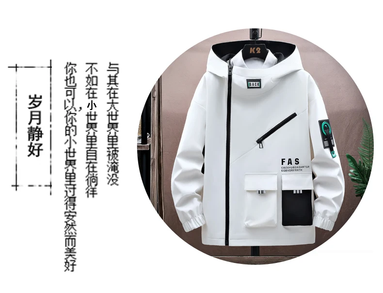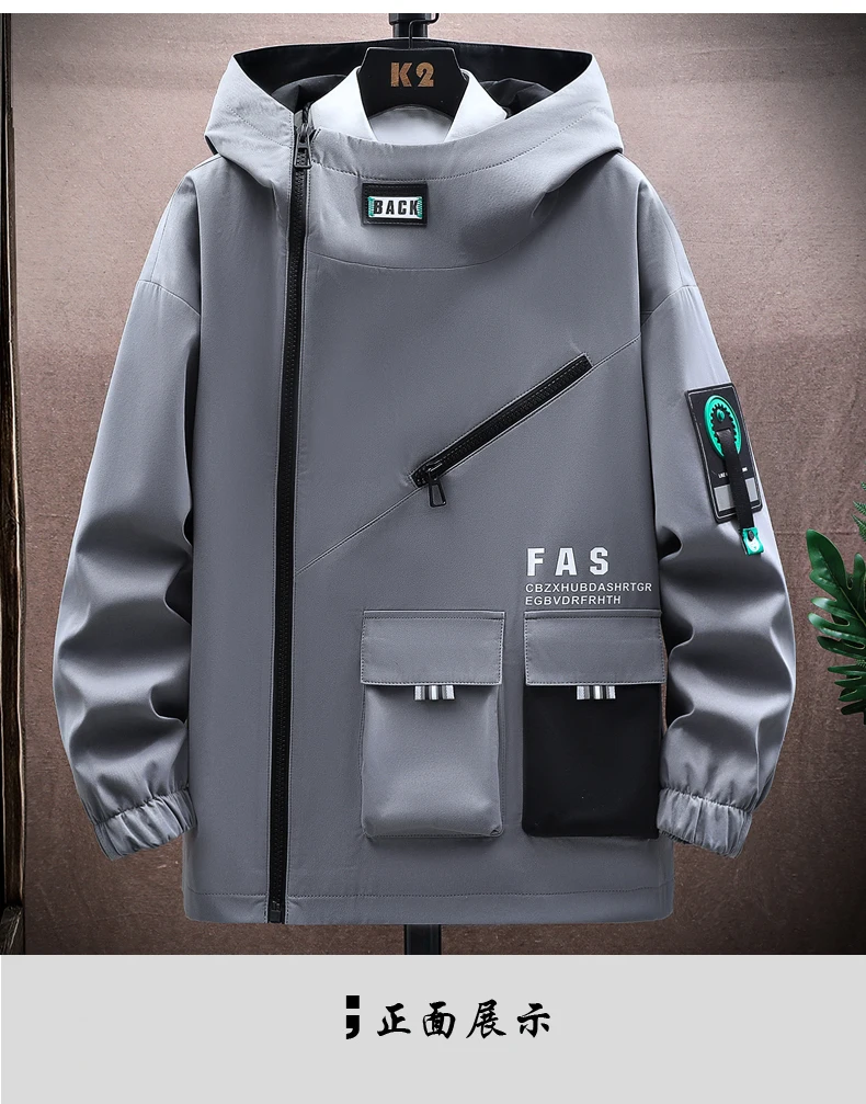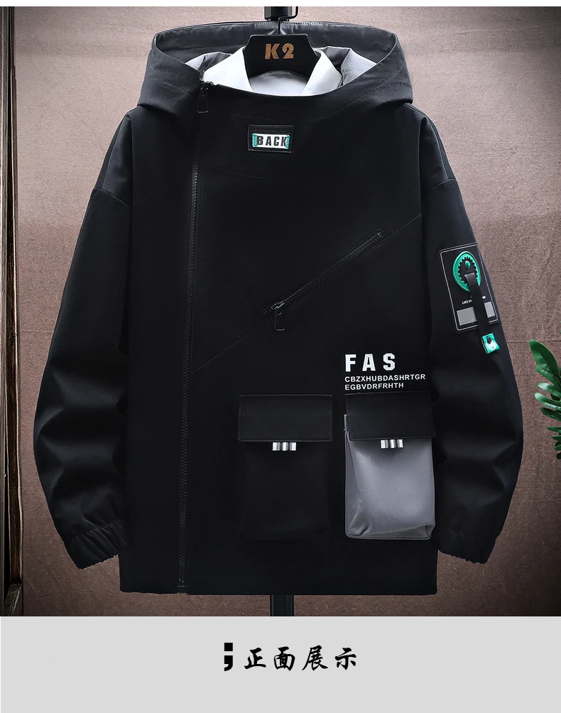 Zipper Jacket Men's Pilot Hooded Jacket Spring and Autumn Baseball Uniform Tide Card Loose Pullover Front Pocket Coat
